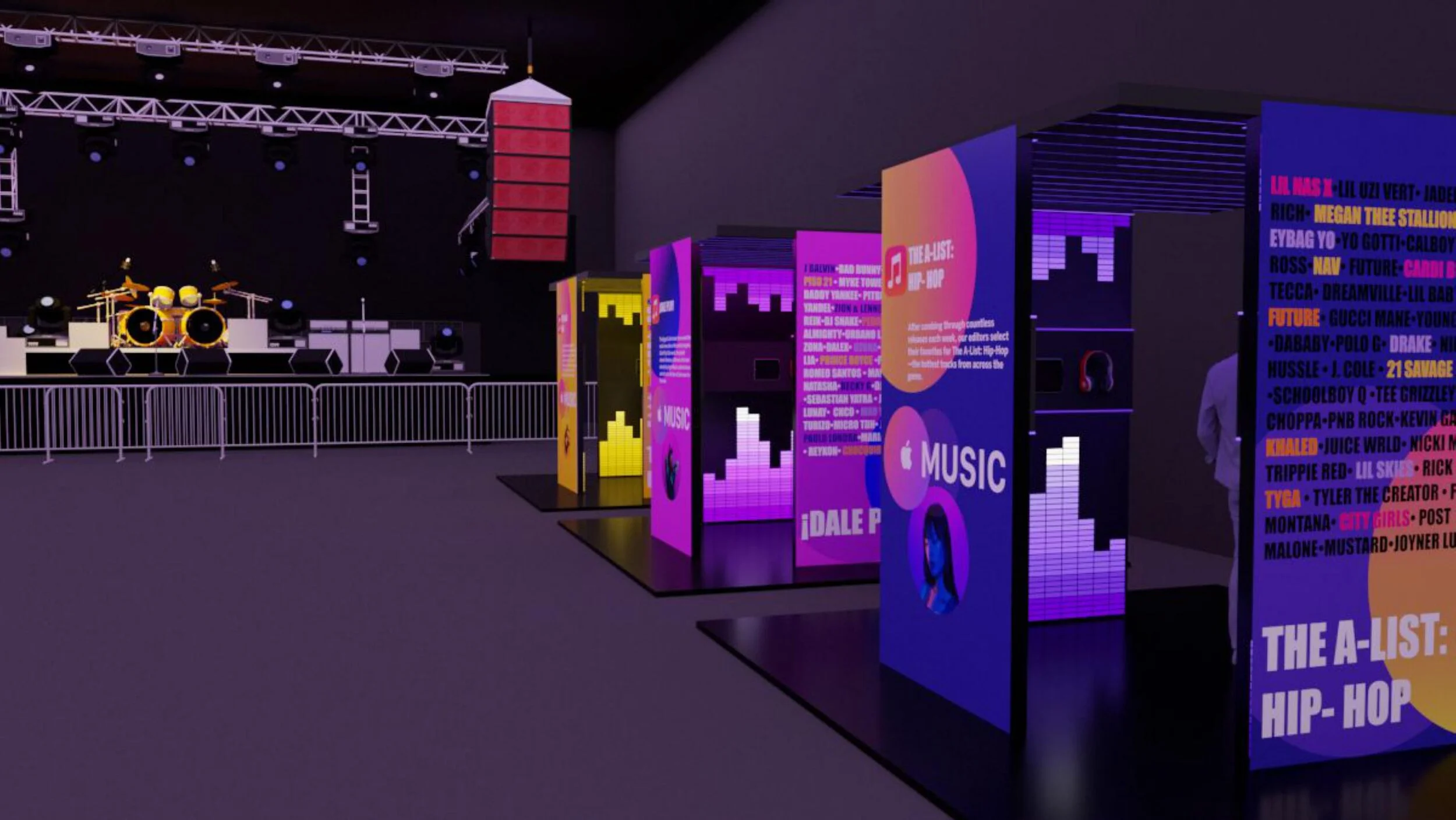 This was the result of a hypothetical project I did while working at an experiential marketing firm. I created an experience that Apple Music could install at their stores, at concerts, on campuses and more. The booths were transportable and brought the playlist experience of the app to the consumers in an interactive setting.